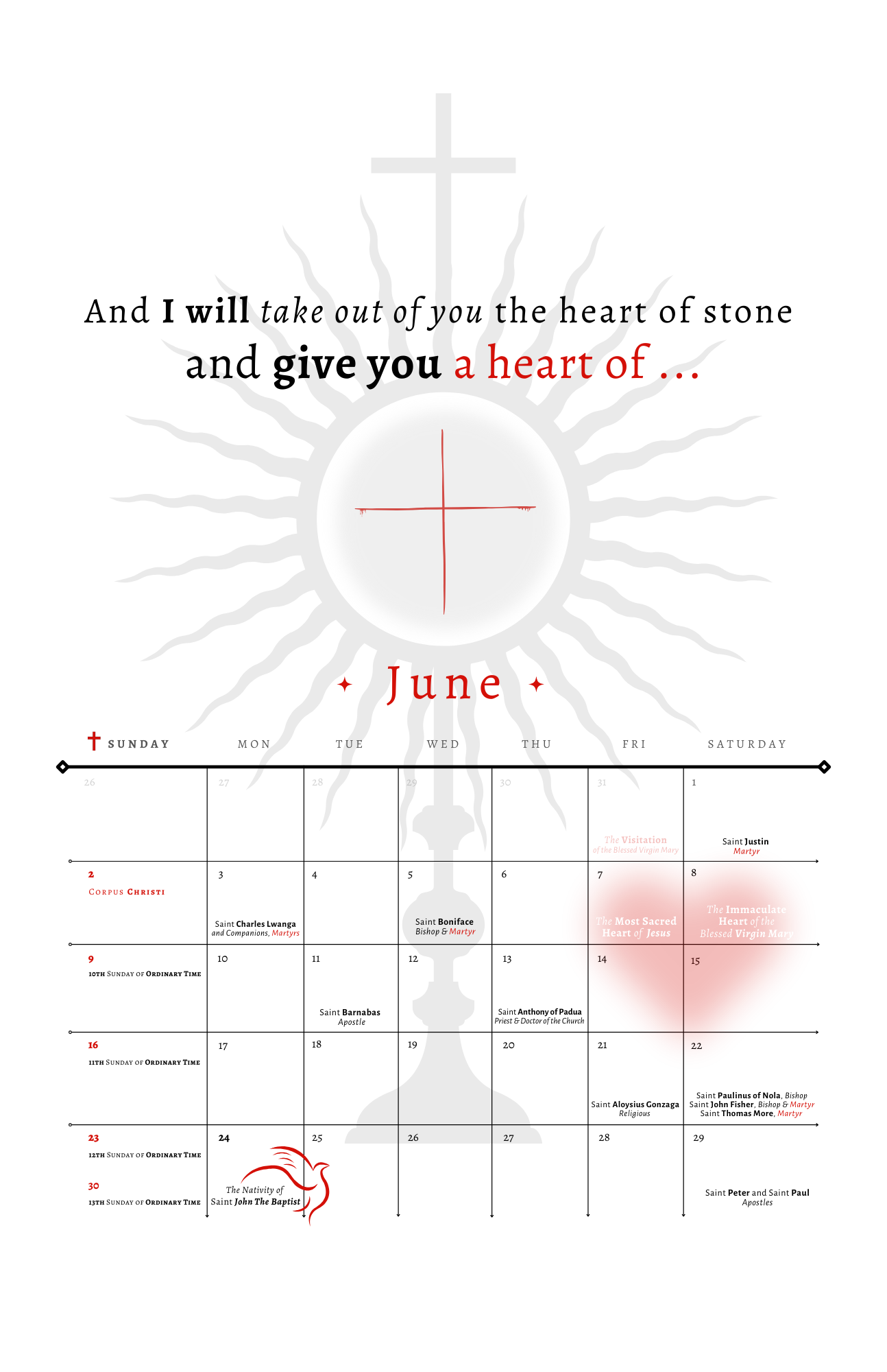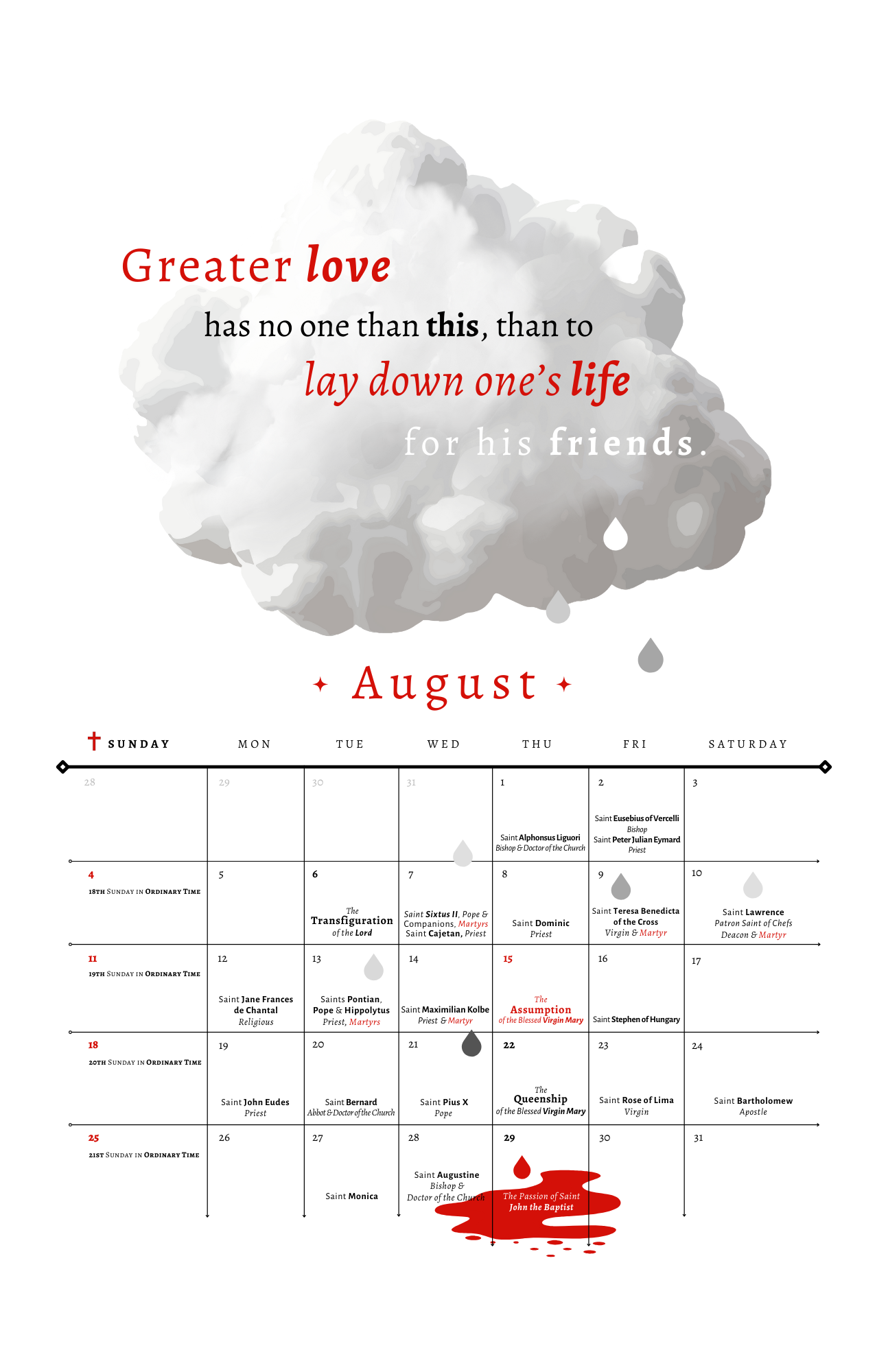 Begun in 2024 — out of my own desire for a minimalist liturgical calendar — I designed the 11″ x 17″ calendar pages to be eye-catching from across the room.